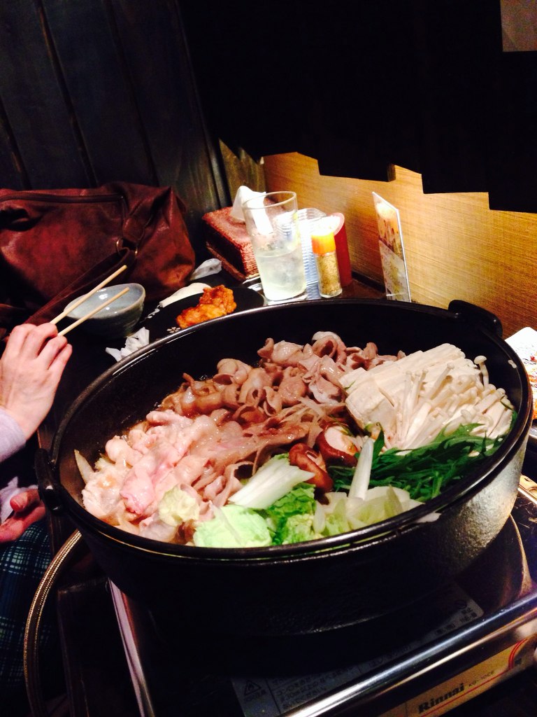 スキヤキ!モツも入ってうまかった。