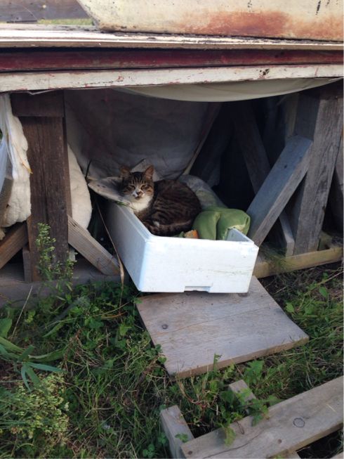 会社のプレハブの近くに、すっかり住みついた猫!